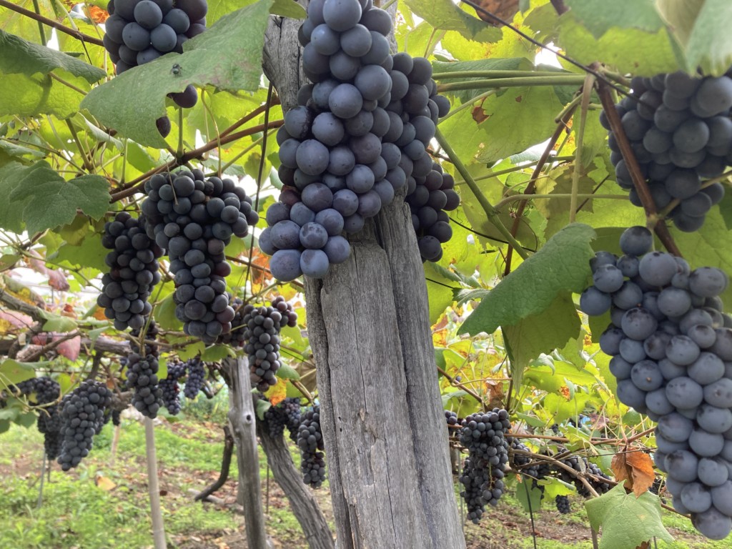 さて、到着したグレープリパブリックさんはボランティアの皆さんと一緒にスチューベンを収穫させていただきました。皆さんでいただいたランチは本当に美味しかったです!その後、そのぶどうを分けていただき、しっかり紐で縛って帰りました。
