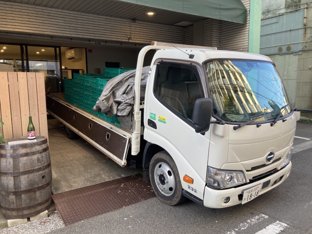 10月に入り、収穫は終わって一息、とはいかず、山形のグレープリパブリックさんからスチューベンを分けていただけるとのことで、なんと山形までぶどうを取りに、2トントラックで向かうことにしました。