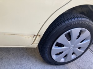 お店の人は親切で、車も調子よく帰れたのですが、帰ってきてビックリ。車に擦り傷が!どこかで擦った記憶は全くなく、他車と擦れ擦れだった記憶もない。あるのは、2回ぐらい大きめの飛び石が当たったような音。飛び石の傷ではないければ、どこか駐車中に他の車に擦られたか。